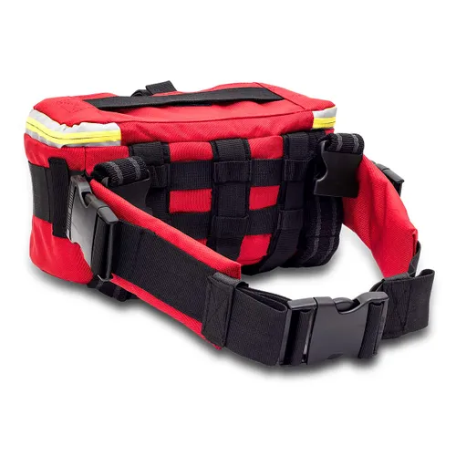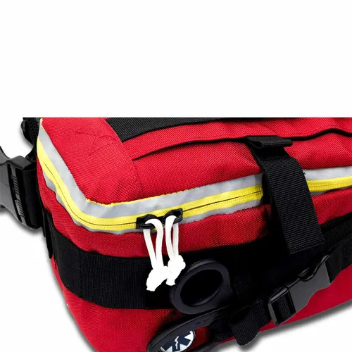 The KID013 is a highly versatile first-aid kit pack with removable and adjustable strapping that allows for the pack to be secured around the leg, waist or to the front or side of other backpacks that feature the MOLLE universal fastening system. It can also be simply handheld. This compact pack has been specifically designed with emergency first responders in mind. Its small size and options for fastening to different parts of the body make this ideal for early interventions. Fast access top pocket, glow-in-the-dark rope zip tabs, internal elasticated securing straps and pocket with buckle for stowing scissors, are but some of the many clever design features presented by this ingenious accessory bag.